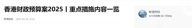 原文登载于新浪财经2月26日发布的关于“香港财政预算案2025丨重点措施内容一览”