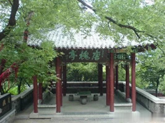 唐槐亭,建于1957年,又叫四面亭。匾上“唐槐亭”三字是全国书法家协会主席舒同1981年来千佛山时题写的。这里原址是秦琼庙,庙里有唐王李世民和大将秦琼的塑像。秦琼,山东济南历城人,是唐王的左武卫大将军,山东的英雄好汉。