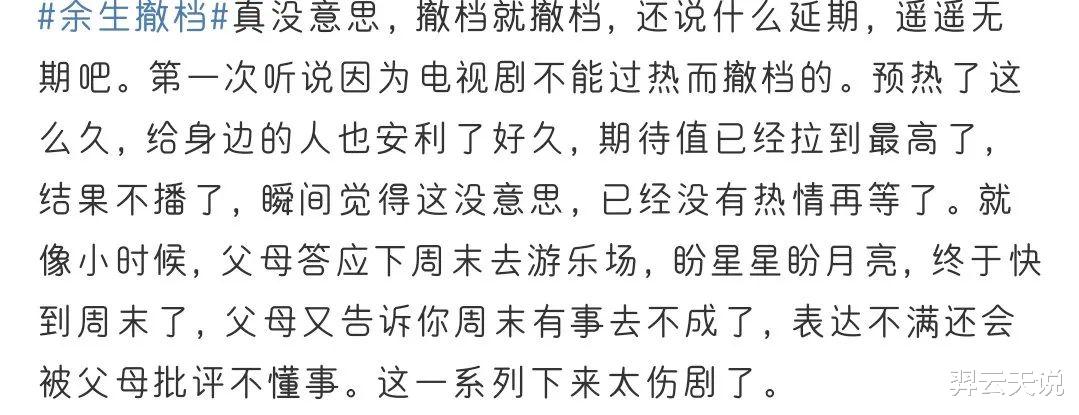 近日被期待已久的《余生,请多指教》,被传前脚有待播的湖南卫视在各视频,微博平台宣传造势,可是却在既定的临开播之前的短短几天疑似宣布撤档。