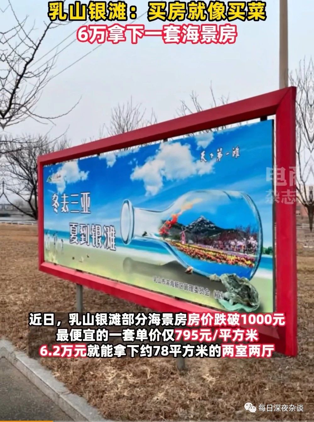 被称为“海边鹤岗”的乳山银滩海景房,之所以房价低甚至跌至千元以下,是当地的烂尾楼盘太多,加之周边配套不足,当地相关产业的缺失,导致这些房源一直无人问津,房价只能一降再降。