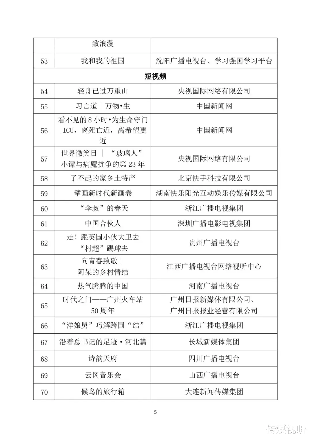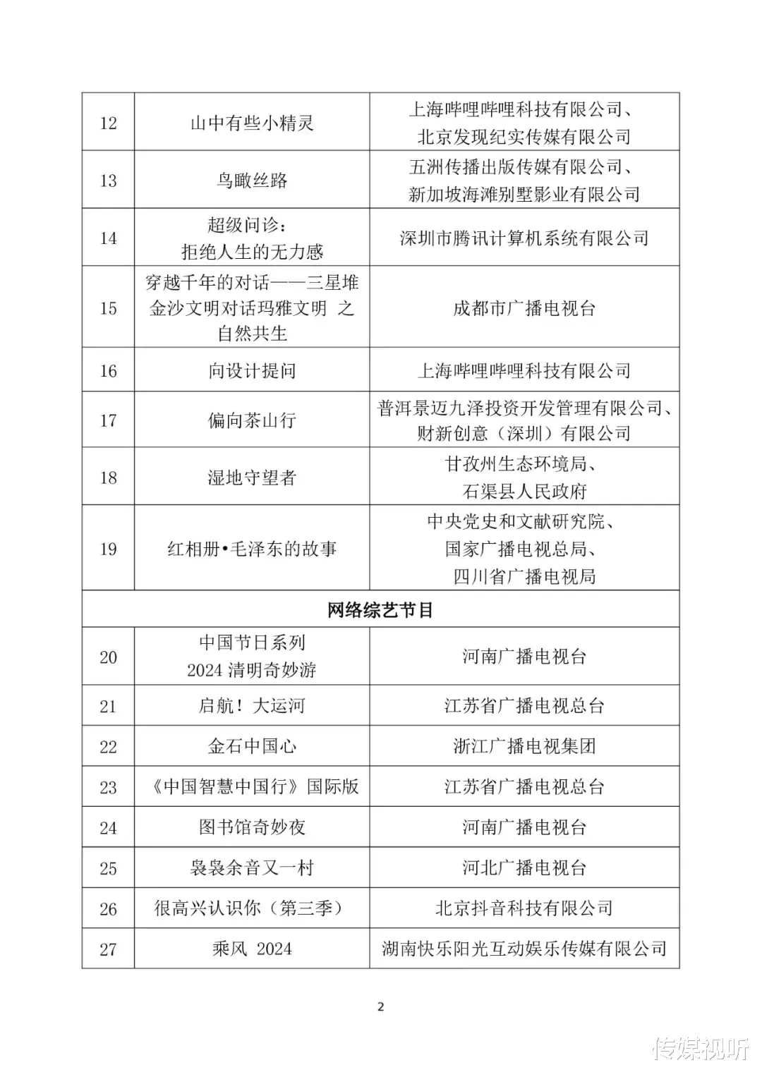 为深入贯彻落实党的二十届三中全会精神,进一步丰富优质网络视听内容供给,发挥精品节目示范引领作用,营造良好创作传播生态,国家广播电视总局近期组织开展了2024年第二季度优秀网络视听作品推选活动。经省级广电行政部门和中央直属单位等推荐,专家评审委员会审核,最终确定了73部入选作品,现将结果予以公布,同时可在国家广播电视总局政府网站(网址:http://www.nrta.gov.cn)公告公示区中查询。