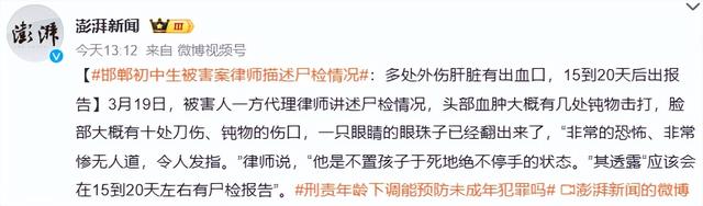 还记得今年全网刷屏的“邯郸初中生杀人案件”吗?