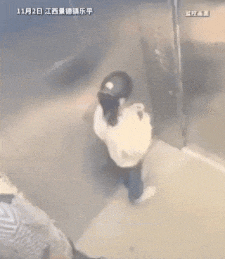 被男孩抱出电梯后,她一直在大哭,引起了路人的注意,男孩这才把她放下逃跑了。