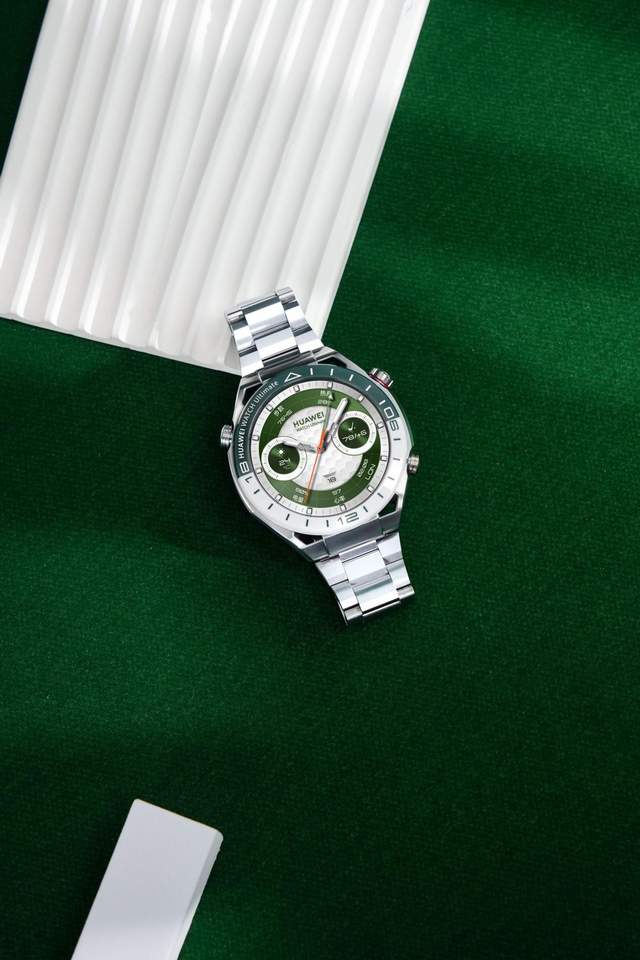 华为WATCH Ultimate非凡探索绿野传奇款的设计灵感来源于大自然中的原野之绿,表圈采用的是双色纳米微晶陶瓷材质,白绿撞色尽显自然之美,亦神秘、亦优雅,这是身份的象征,也是品位的彰显。
