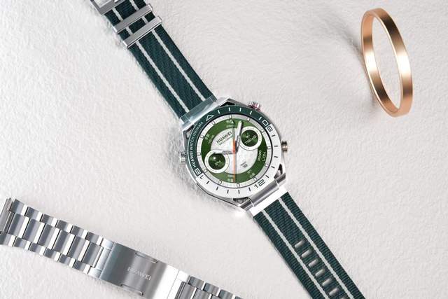 华为WATCH Ultimate非凡探索绿野传奇款拥有三款表带,分别为钛合金表带、绿白双色无梭一体化编织表带、HNBR高弹性橡胶腕带,适用于不同的场合和不同的使用方式,可商务、可时尚、可运动,是一个灵活切换的多面手。