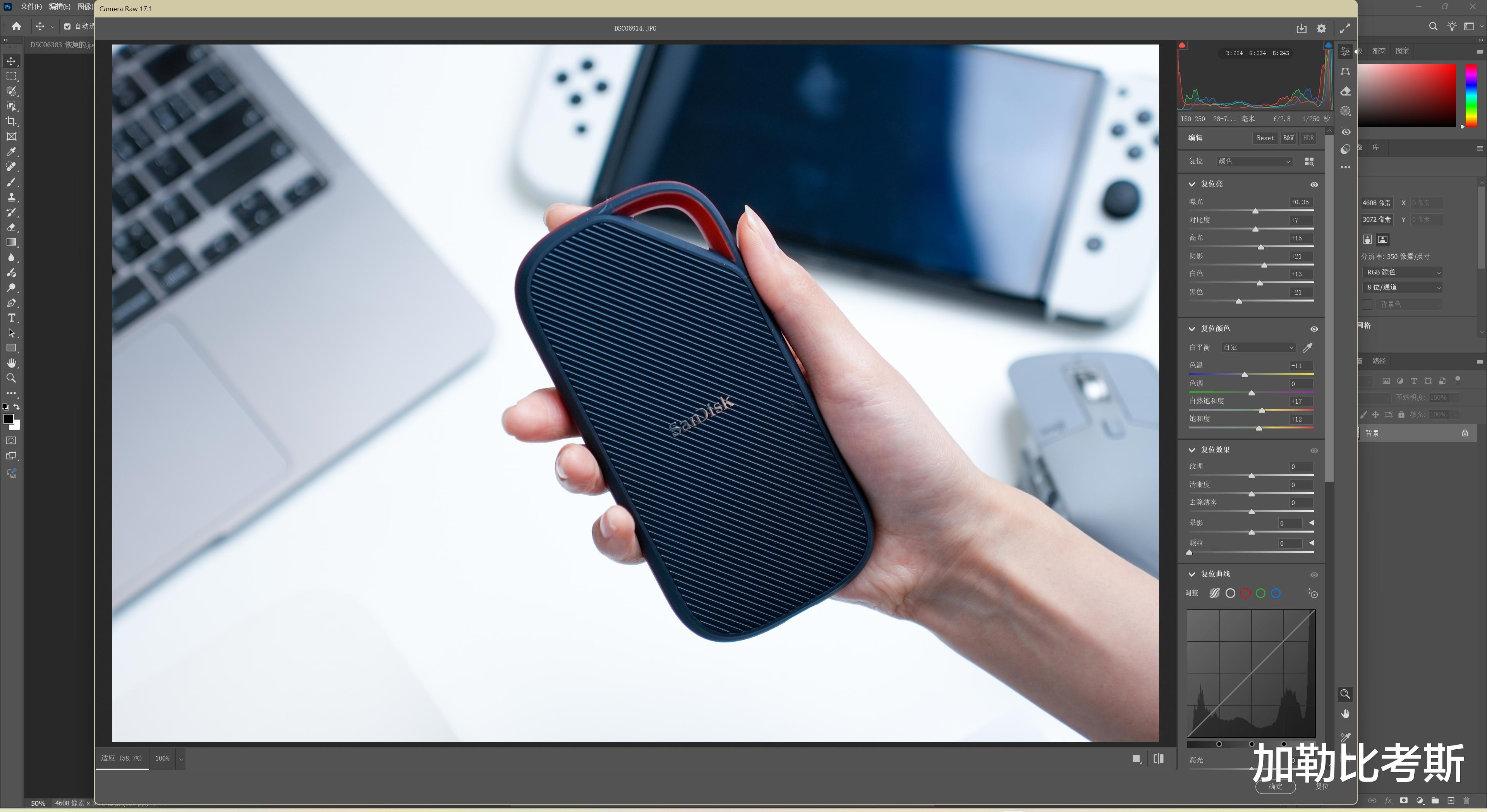 可以看到我是在使用LR2025进行照片的批量编辑工作,我使用的是索尼A7M4进行拍摄,一张RAW格式大概是80MB,22张照片大概是1.6GB,同时要生成预览图,闪迪至尊超极速移动固态硬盘USB4版提供了绝佳的速度,无论是打开还是导出都几乎是瞬时,但是需要主要,导出也涉及了显卡的性能,我这里是使用的RTX5070Ti显卡。
