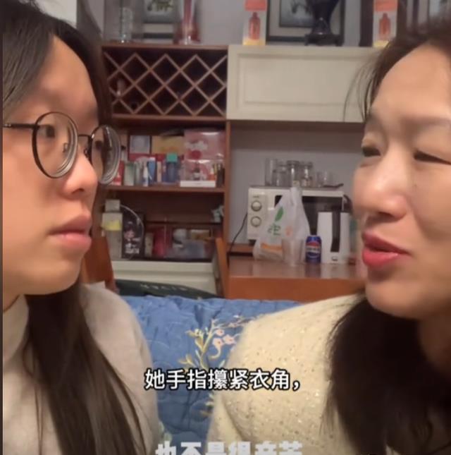 妈妈看到自己的女儿哭成这个样子,赶紧擦眼泪,眼眶也瞬间红了。