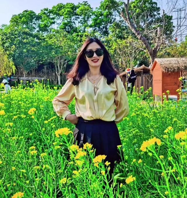 2021年的一张照片可以看出那时候的许建华还非常时髦,戴着墨镜穿着真丝衬衣,特别有气质。