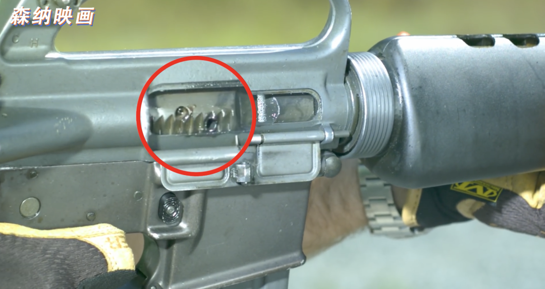 但也正是因为M16的拉机柄不随动,所以它并不能对机框进行助推。再加上M16的枪机比较轻,惯性较小,如果这时枪膛内有异物的话,就会造成枪机复进不到位无法完成锁闭和开火。而陆军给M16加的这个装置就是当遇到枪机复进不到位的情况时,射手可以通过按压助推柄使枪机复位,这也是为什么大家从抛壳窗看带有助推柄的M16时,枪机上会有一排凹槽的原因。看到这里时我不禁想到了老版的CS,里面的M4在上膛时居然拉的是辅助推机柄,这玩儿只能推不能拉的,一点点都不可以拉。