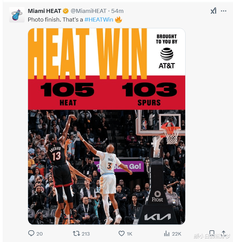 北京时间2月2日,NBA常规赛,迈阿密热火105-103击败圣安东尼奥马刺,这场比赛马刺的核心维克托-文班亚马轮休(背靠背第二场),没想到没有文班的马刺与热火鏖战至最后一刻,终场前5秒保罗错失了准绝杀,这才有了阿德巴约的后仰压哨读秒绝杀。