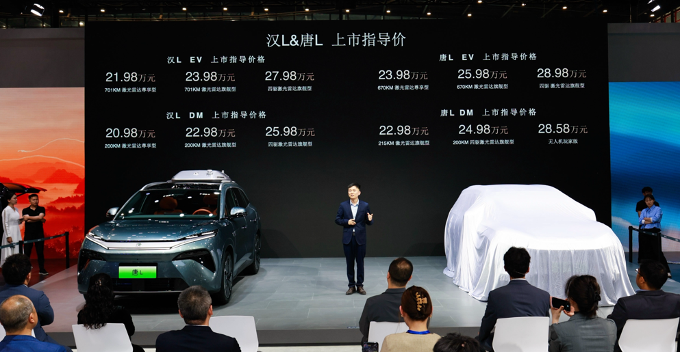 4月9日,比亚迪汉L、唐L正式上市,其中汉L囊括了插混及纯电版,售价区间为20.98-27.98万,唐L纯电及插混版的售价区间为22.98万-28.98万,这一定价延续了比亚迪一贯的“用户至上”的定价策略。
