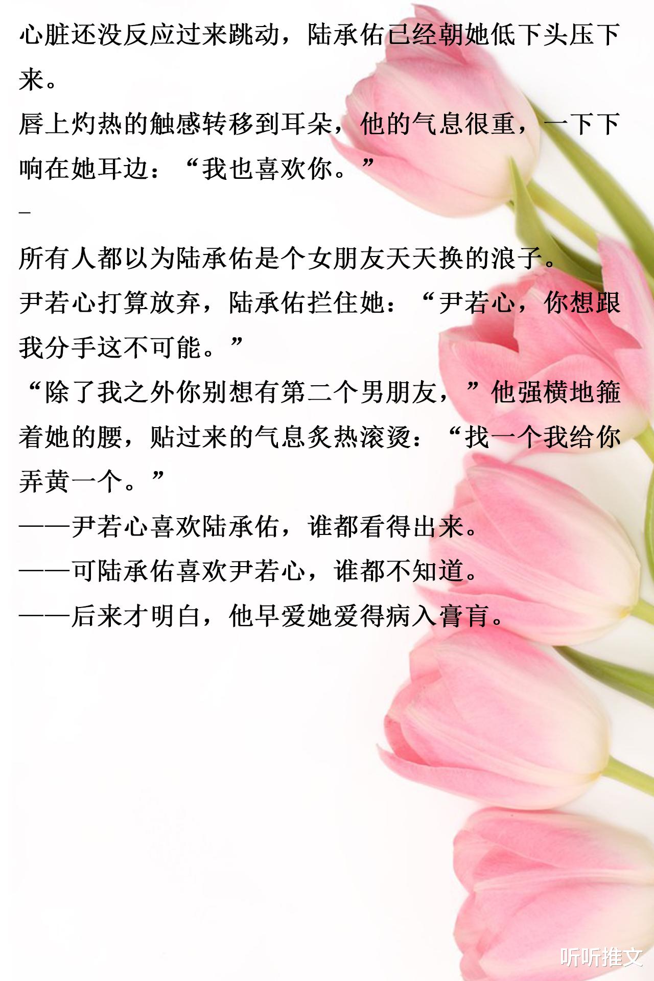 书评:转到新学校后,尹若心不小心招惹了麻烦,正在被人为难之际,是陆承佑出手相助。自此两人开始有了交集,而尹若心也一天天喜欢上了这个传说中校园浪子。高考结束,尹若心认为自己只是陆承佑其中一个暧昧对象,打算放弃,而她不知道的是,陆承佑早已爱她爱得病入膏肓。