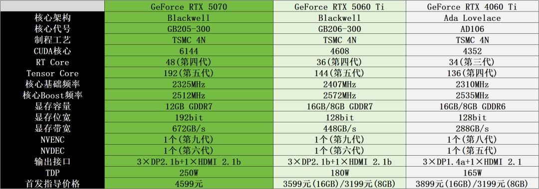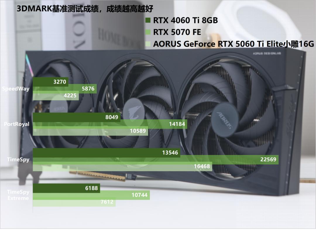显卡:NVIDIA GeForce RTX 4060 Ti 8GB FE、NVIDIA GeForce RTX 5070 FE、AORUS GeForce RTX 5060 Ti Elite小雕16G