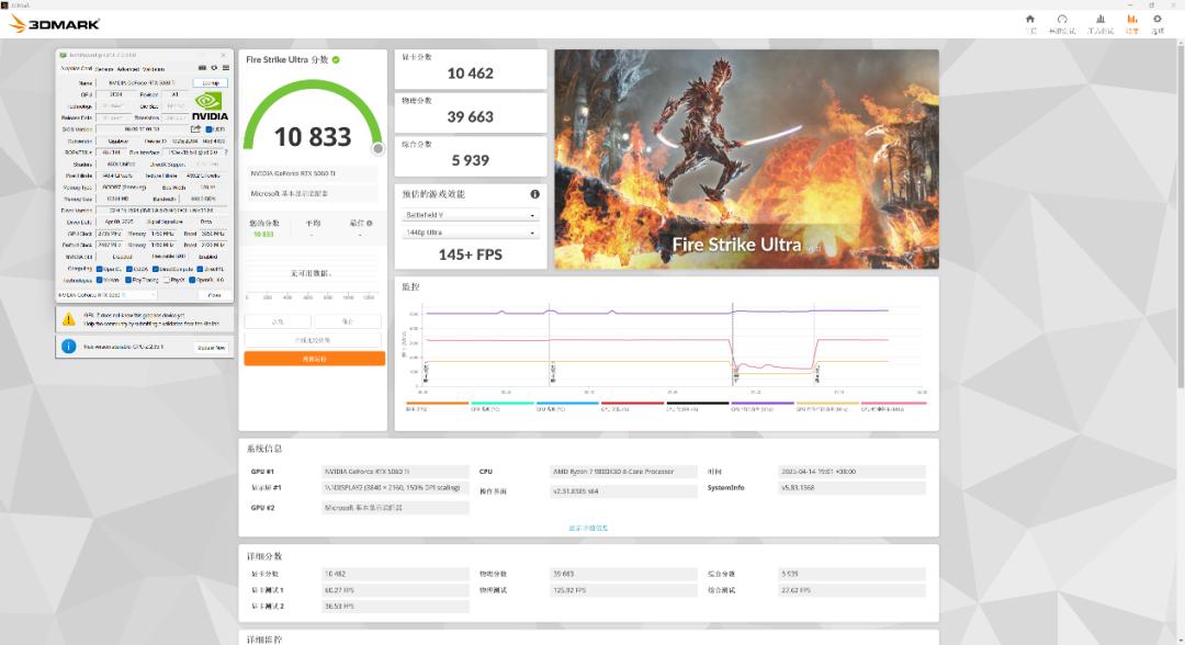 性能验证环节包含两大核心测试:其一为3DMark Firestrike Ultra基准测试,用于评估显卡在极限频率下的图形渲染能力;其二为Furmark稳定性测试,旨在验证显卡在持续高负载工况下的运行可靠性。
