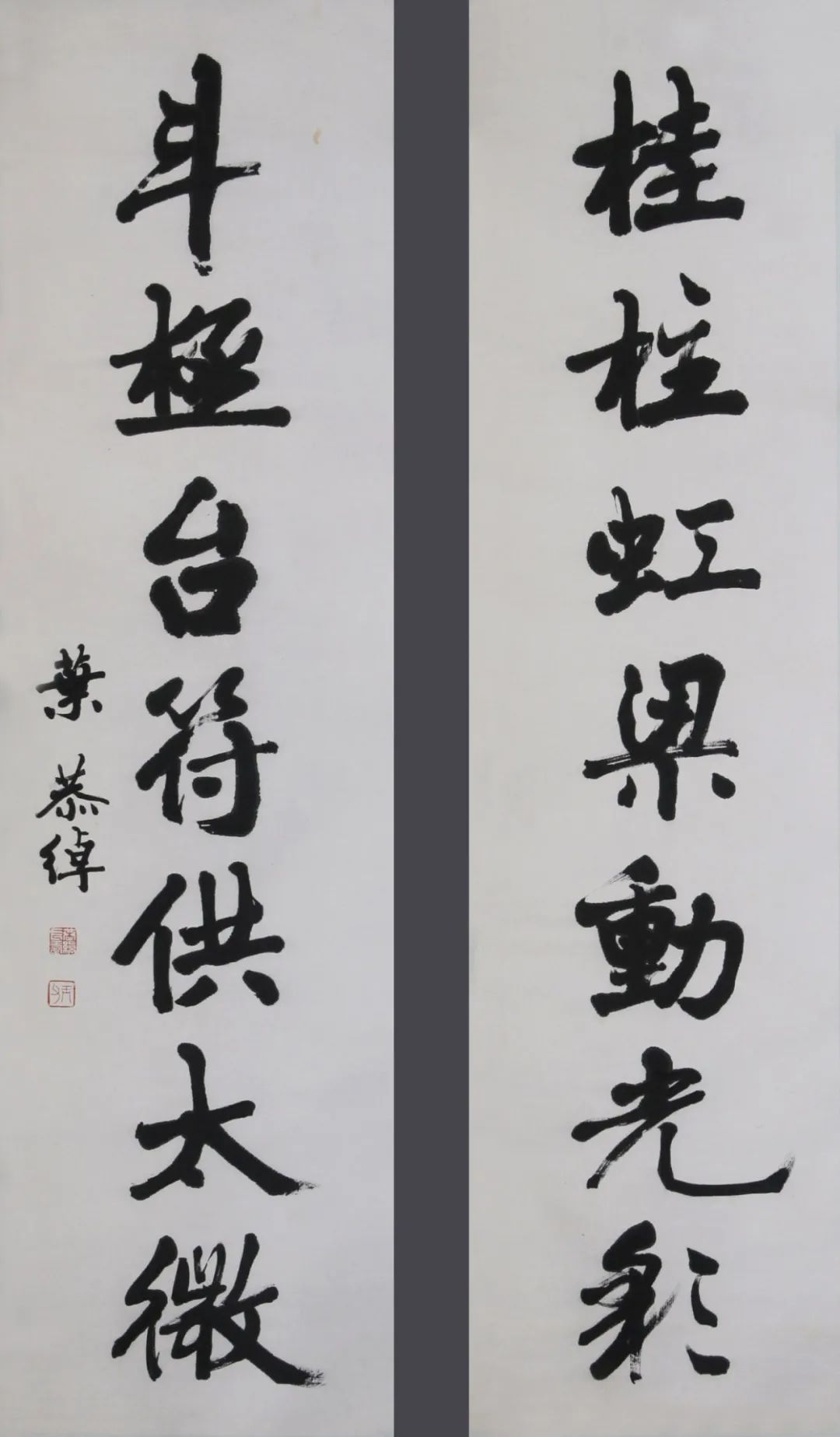 叶恭绰桂柱斗极七言联151×39cm墨笔纸本无年款