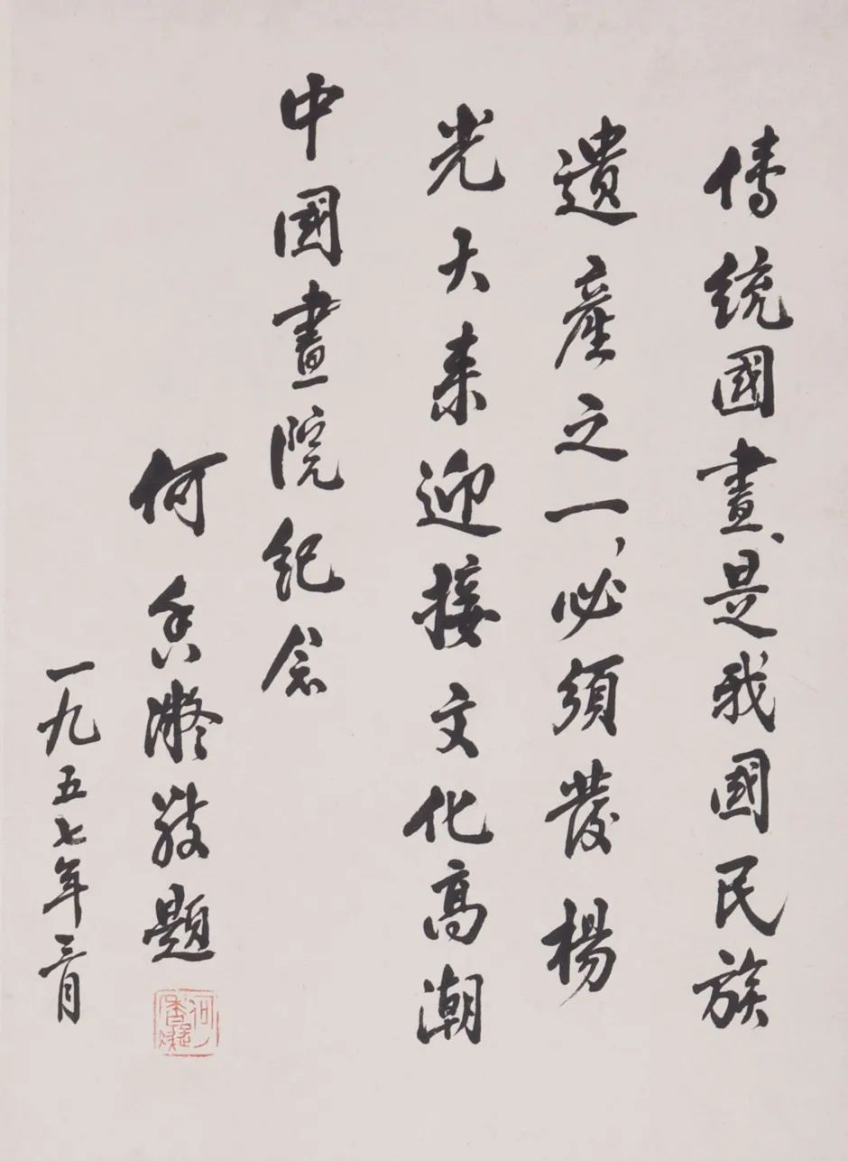 如果将何香凝放置于近代美术史的上下文之中,何香凝的艺术创作,尤其是晚年定居北京的创作可视为近代中国美术史的一个特别的案例。何香凝横跨近六十多年的艺术创作中,她的艺术创作与其革命人生紧密关联,并形成个人独特的艺术面貌。六十多年,先生往来于南北、东西,也因此与不同社会团体 (南社”寒之友社”等) 、地域 (上海、南京、杭州、北京等) 的艺术家存在着广泛的交游,并为后人留下一批精心绘制的合作画”。画中可见与何香凝合作的艺术家主要是活动于北京和江南两个区域,尤其以前者占多数,他们的名字可谓构成了近代北京画坛的半壁江山,以此而论,北京时期的集体创作”又具有了不一般的意义。以个案研究的视角,此批作品如同近代美术史当中其他集体创作”行为 (如西北写生”井冈山系列”东北写生”东欧写生”等) ,可视为新中国美术史中集体创作”的一份珍贵历史记忆。