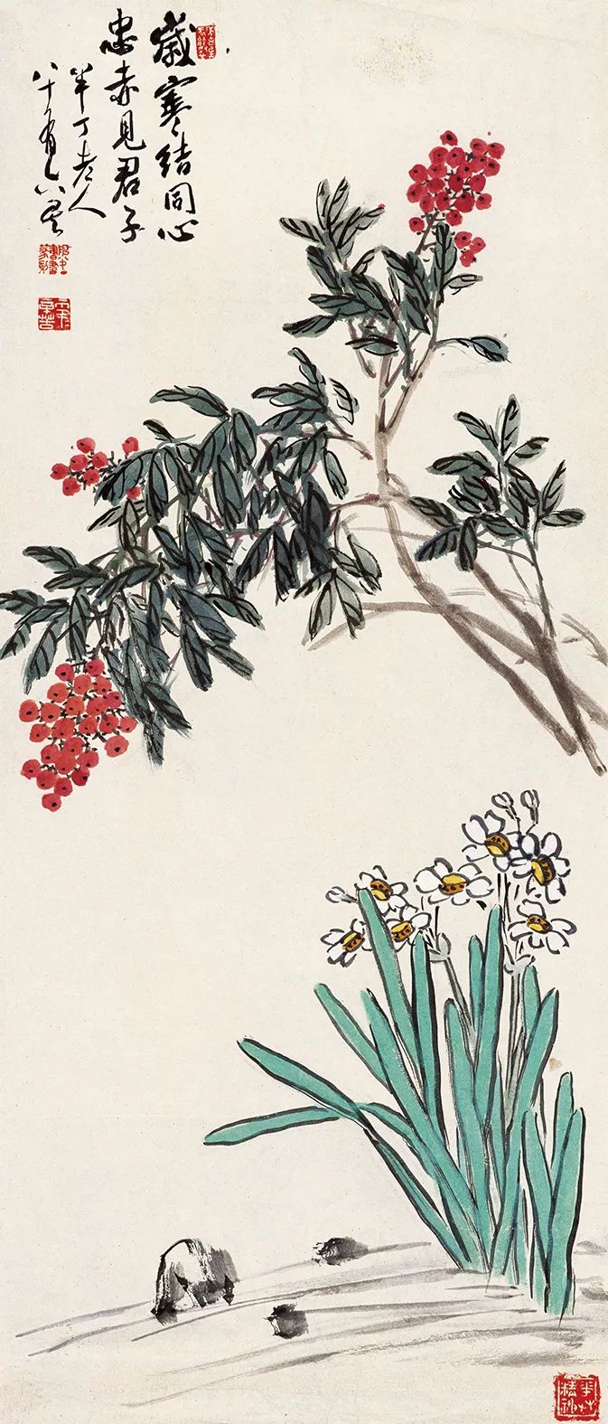 陈半丁岁寒结同心87×36.5cm设色纸本1961年