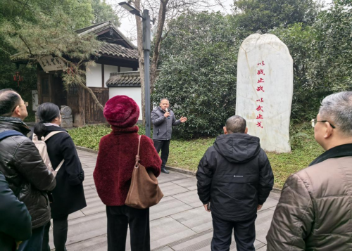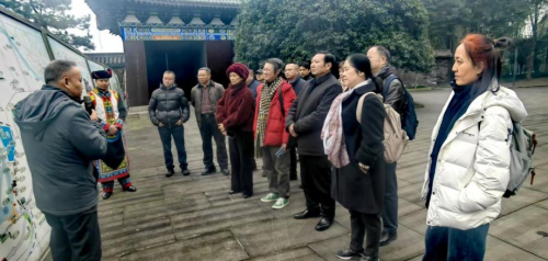 图为四川省非遗保护协会专家组与省旅游投资集团领导和来宾参观园区