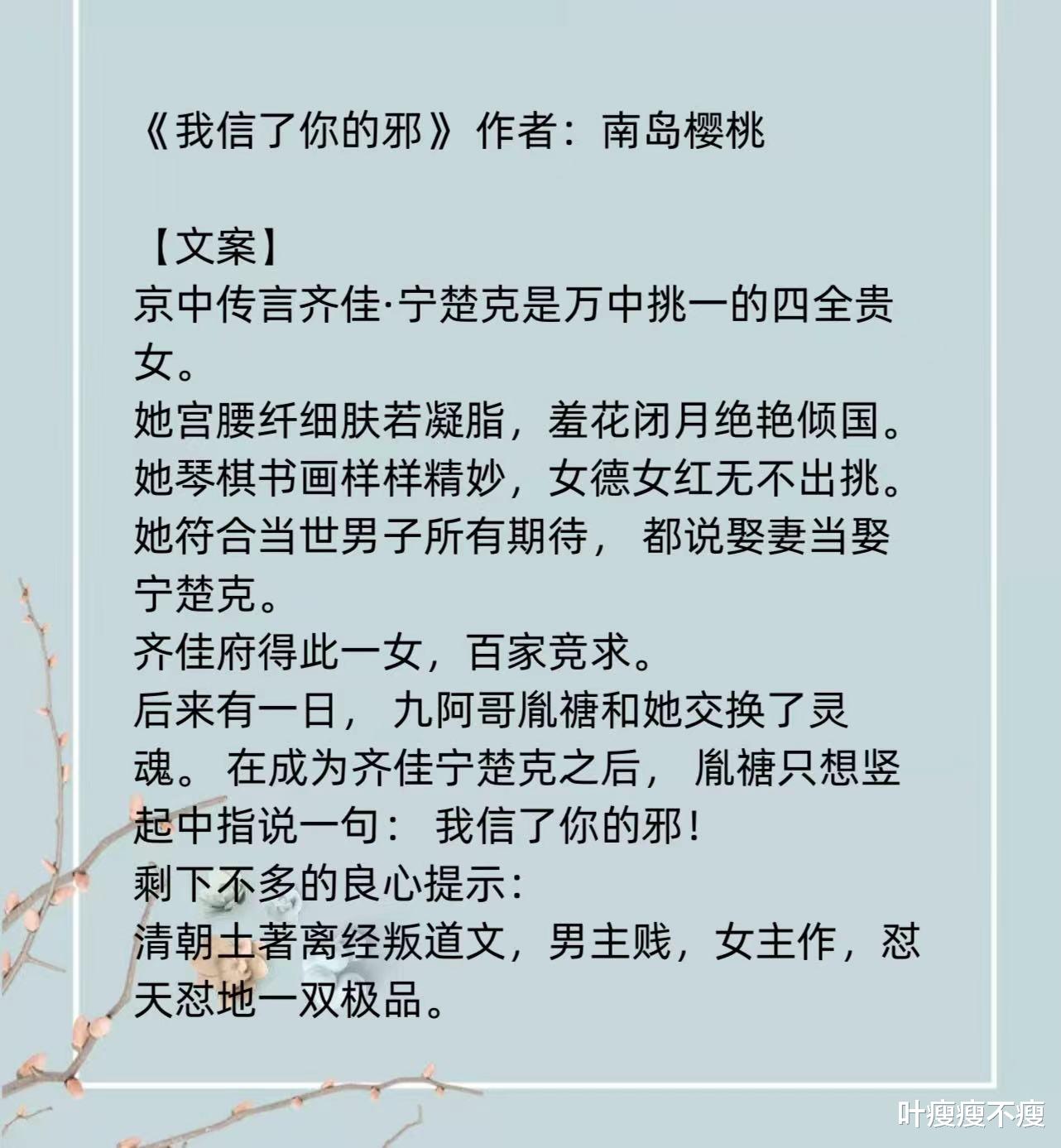 男女主因为一次意外,灵魂互换。女主肤白貌美,看上去温婉娴静,知书达理,实则离经叛道,武艺高强,吃喝嫖赌样样精通。意外成为九阿哥,稳稳地,不带慌的。顶着皇子的身份横着走,日子过得不要太美好。
