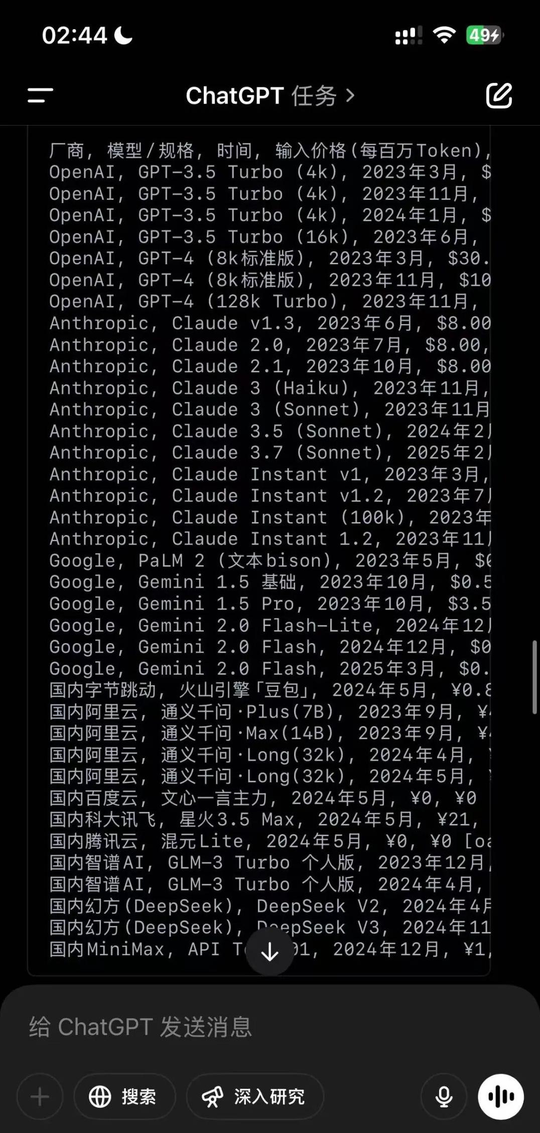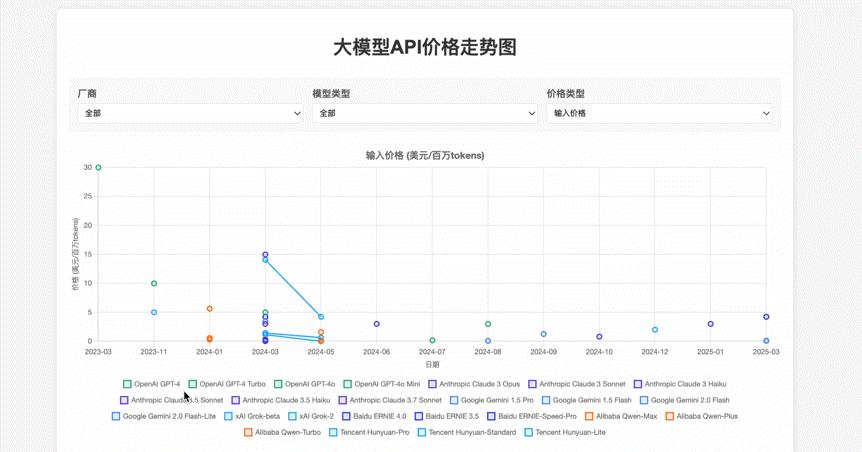 我们让它做一张“大模型API两年以来的价格走势图”。