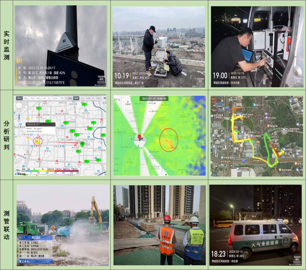 50个微型大气自动监测站、气溶胶激光雷达、无人机、多参数大气走航监测车先后部署到禅城区,采集空气质量变动、污染物排放及气象条件等实时数据,构建空气质量分析模型,以禅城区环境空气质量“日报”、“周报”、“月报”的形式跟踪数据变动情况,让原本微不可见的大气颗粒物、一氧化碳、二氧化氮、臭氧等物质以数据或图表等形式清晰直观,每次的气象污染,并整理形成《禅城区环境空气质量污染分析报告》,建立污染案例库,总结规律,逐渐形成具禅城特色大气污染防治“套路”和“天地人车”治污大气监测监管体系,提高工作效率。