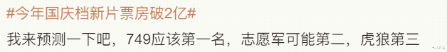 题材方面,《志愿军2》虽是今年国庆档唯一一部主旋律战争大片,放在几年前是相当受宠的存在,但正因为曾经受宠,便会有观众想要更多选择。
