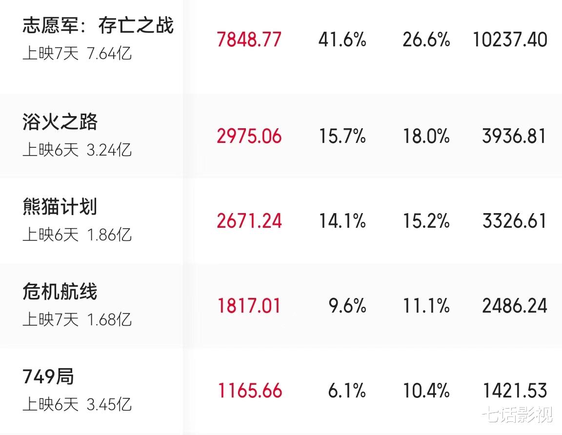 然,国庆档正式开始后,《志愿军2》却打了个相当漂亮的翻身仗。不仅口碑是国庆档商业片里的TOP1,票房从上映次日便开始领跑国庆档。