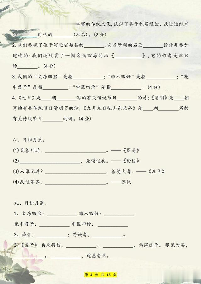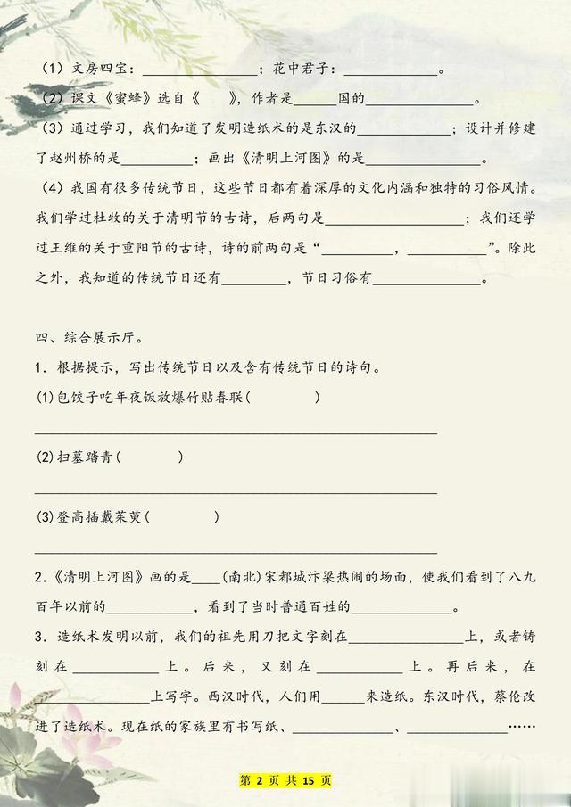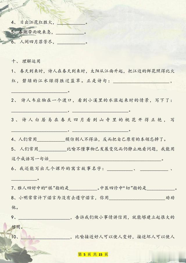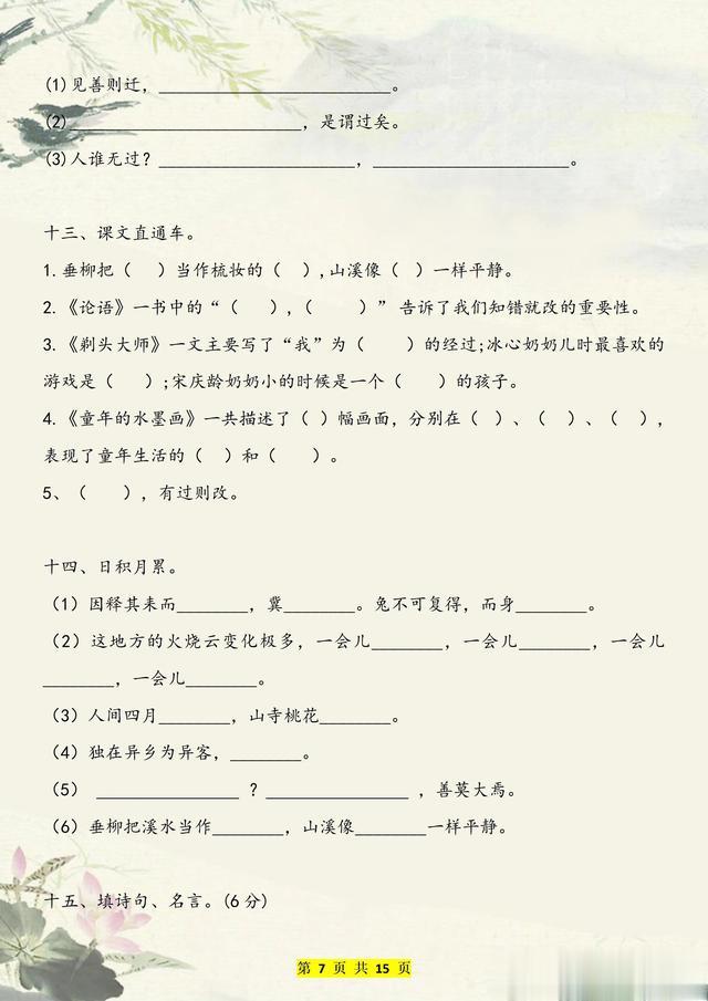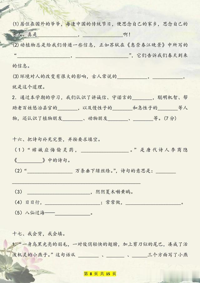 班主任:三年级下册语文期末默写专题梳理附答案,每年都会考
