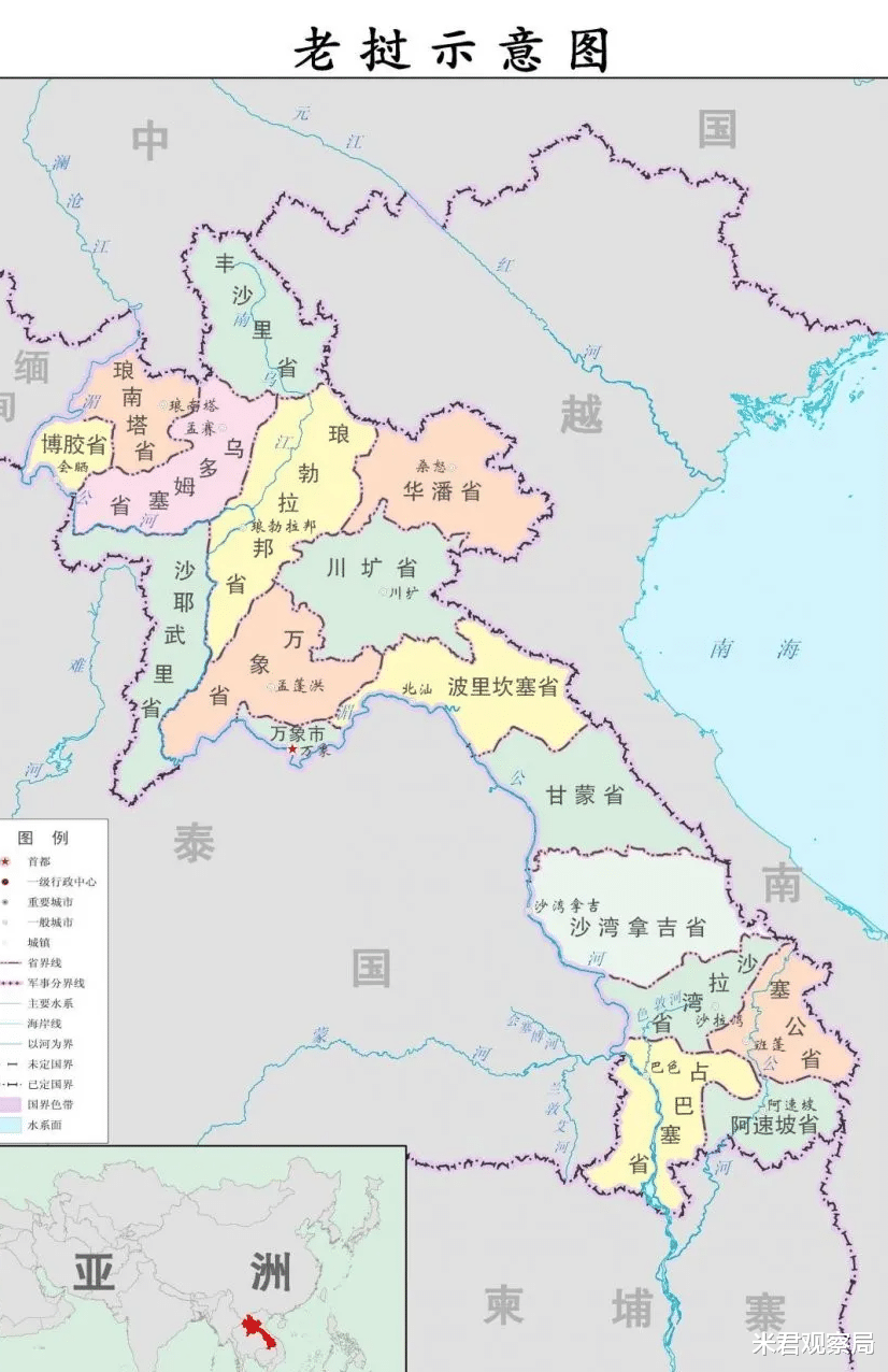 中国的邻国老挝,全称老挝人民民主共和国,又称辽国,是一个位于中南半岛北部的内陆国家,北邻中国,南接柬埔寨,东临越南,西北毗邻缅甸,西南毗邻泰国,国土面积23.68万平方公里,人口700万(2018年),首都万象。虽然全国有几十个民族,但是主要民族是老族。