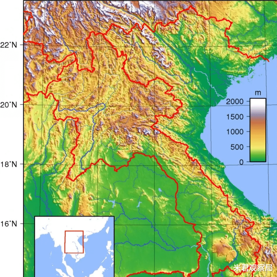 看老挝地形,老挝境内80%为山地和高原,且多被森林覆盖,有“中南半岛屋脊”之称。而在中国云南地区,也有“十万大山”。