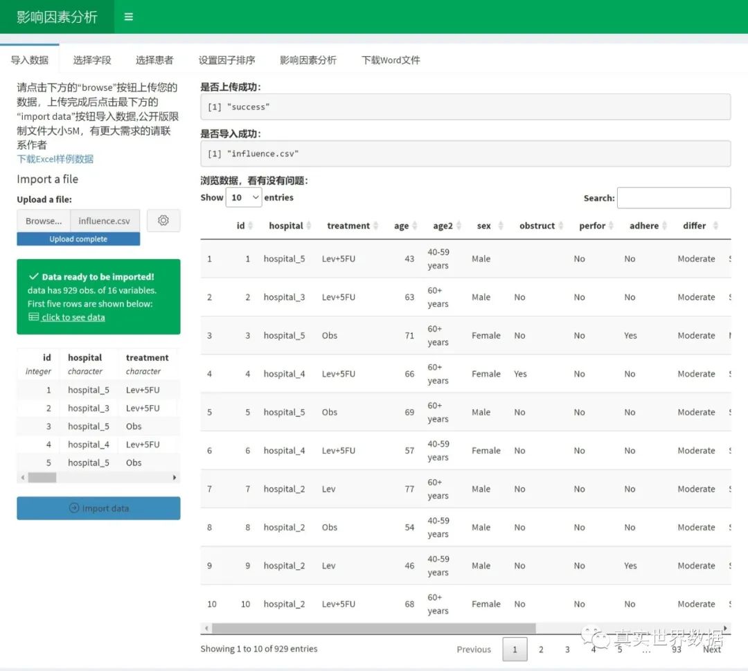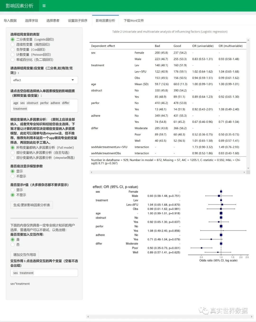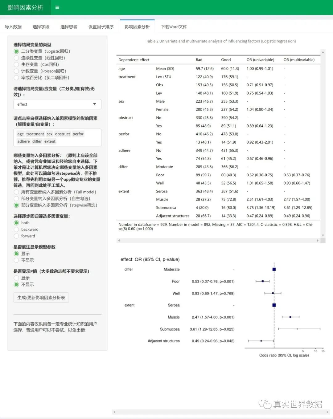 根据上传的科研数据,简单点击设置后,自动完成单因素和多因素的分析