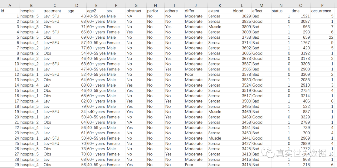 time代表从开始日期(开始日期的定义由你的研究目的决定,如随机对照研究往往取随机化入组的那一天为开始日期,而观察性研究可以取首次诊断日期或首次治疗日期等等根据研究目的而定)到结局日期的时间差。当status=1时,结局日期为发生事件(如死亡)的日期,当status=0时,结局日期为最后一次活着的日期(如研究结束日,或随后一次随访日)。