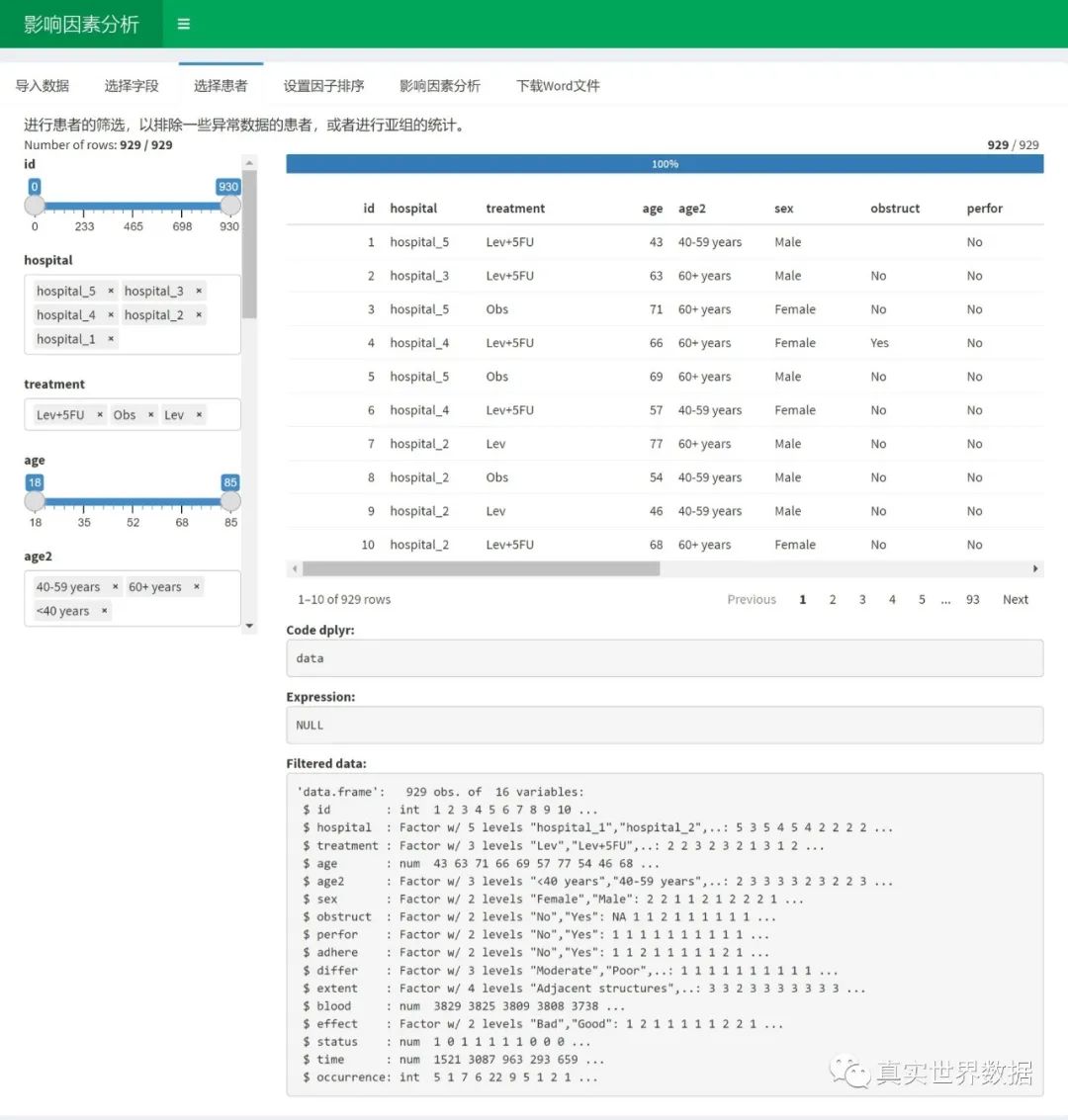 如果要选取一部分患者做亚组分析的话,在这个页面做选择和调整。