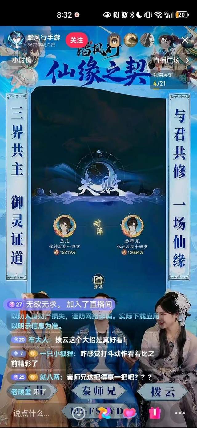 此外,直播特别设置了运营挑战环节,一方是运营代表秦师兄,另一方则是美女coser所化身的器灵拔云与玉儿。拔云与玉儿都是《踏风行》中广受玩家好评的人气MAX级器灵,而官方也十分“听劝”地挑选出TA们加入直播间,可谓是将玩家的喜好放在了首位。在PK过程中,秦师兄只要失败就送直播间福利,不知道这是游戏官方对于自身实力的无比自信,又或是变着法想给玩家发福利呢?不过策划调整环节玩下来,最后收益最大的依旧是直播间的观众,福利白嫖起来超香的。同时官方也会时不时抽取一波幸运观众送购物卡,欧皇观众已经拿到手软。