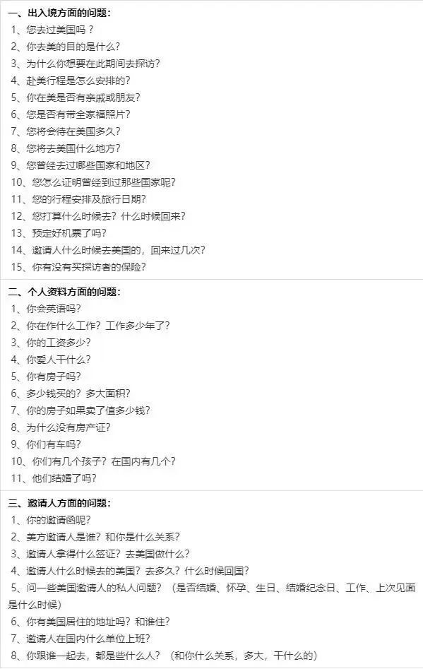 04美国探亲签证面签问题有哪些?一般会问哪些问题?