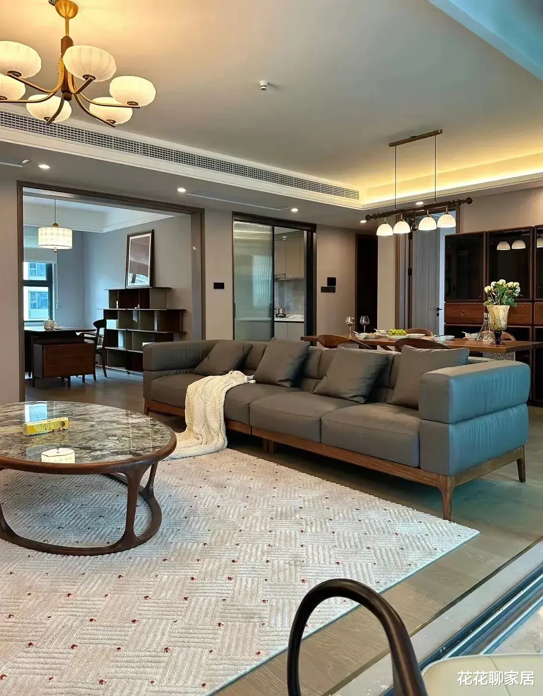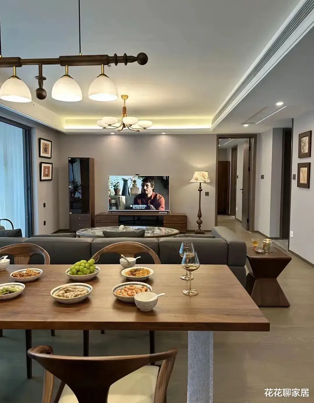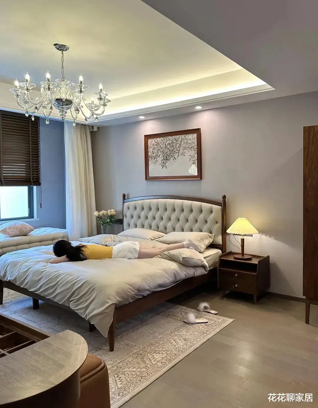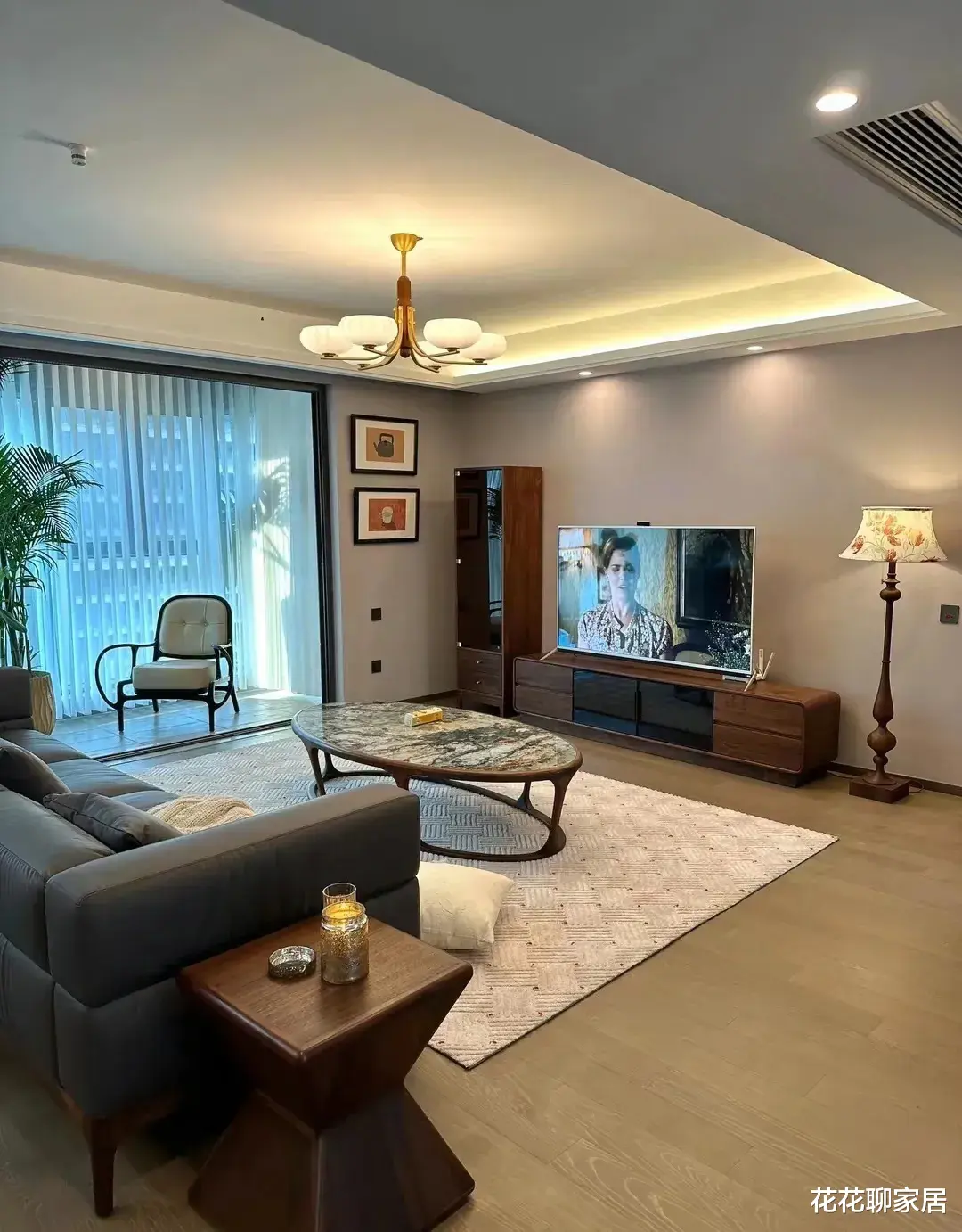 吊灯的光辉与四周隐匿的灯带默契配合,交织出一幅柔和温馨的光影画卷,光线细腻如丝绸,轻抚过每一寸空间,驱散了所有疲惫与浮躁,只留下满室的舒适与安宁,让人仿佛置身于一个温柔的梦境之中。