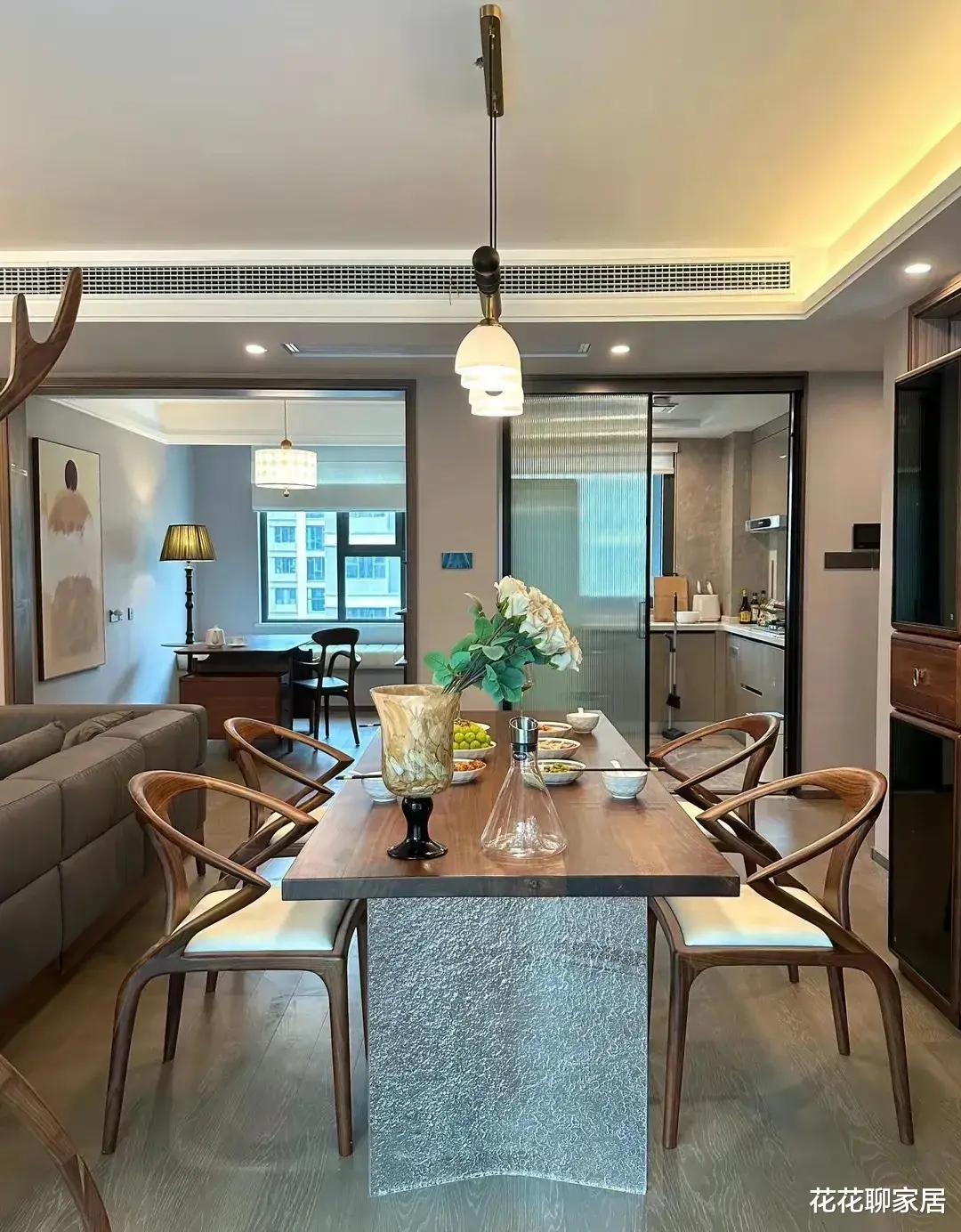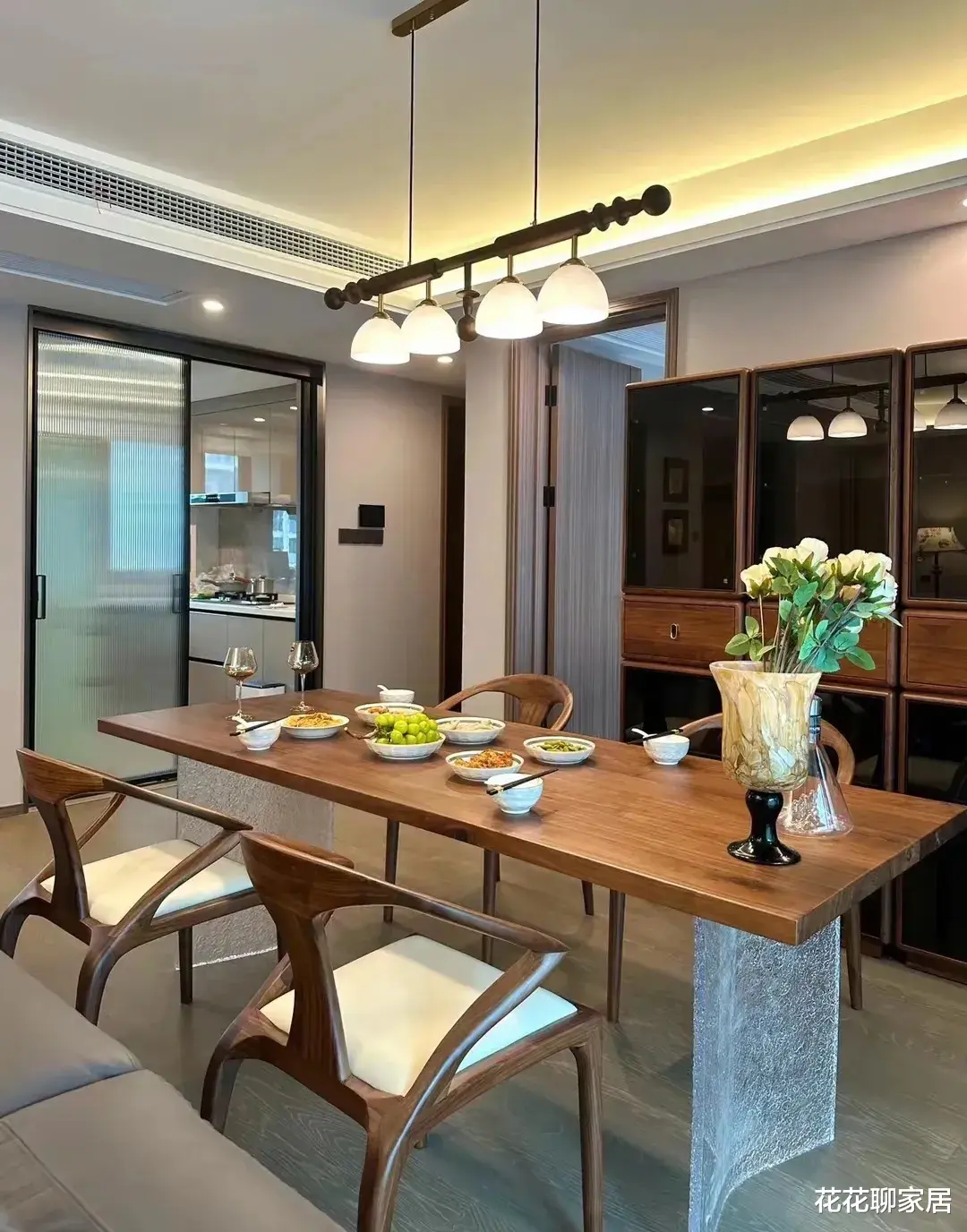 餐厅里,木质餐桌宛如一块温暖的琥珀,将柔和的木色光芒静静散发,与室内其他木质家具携手编织出一幅和谐的居家画卷。