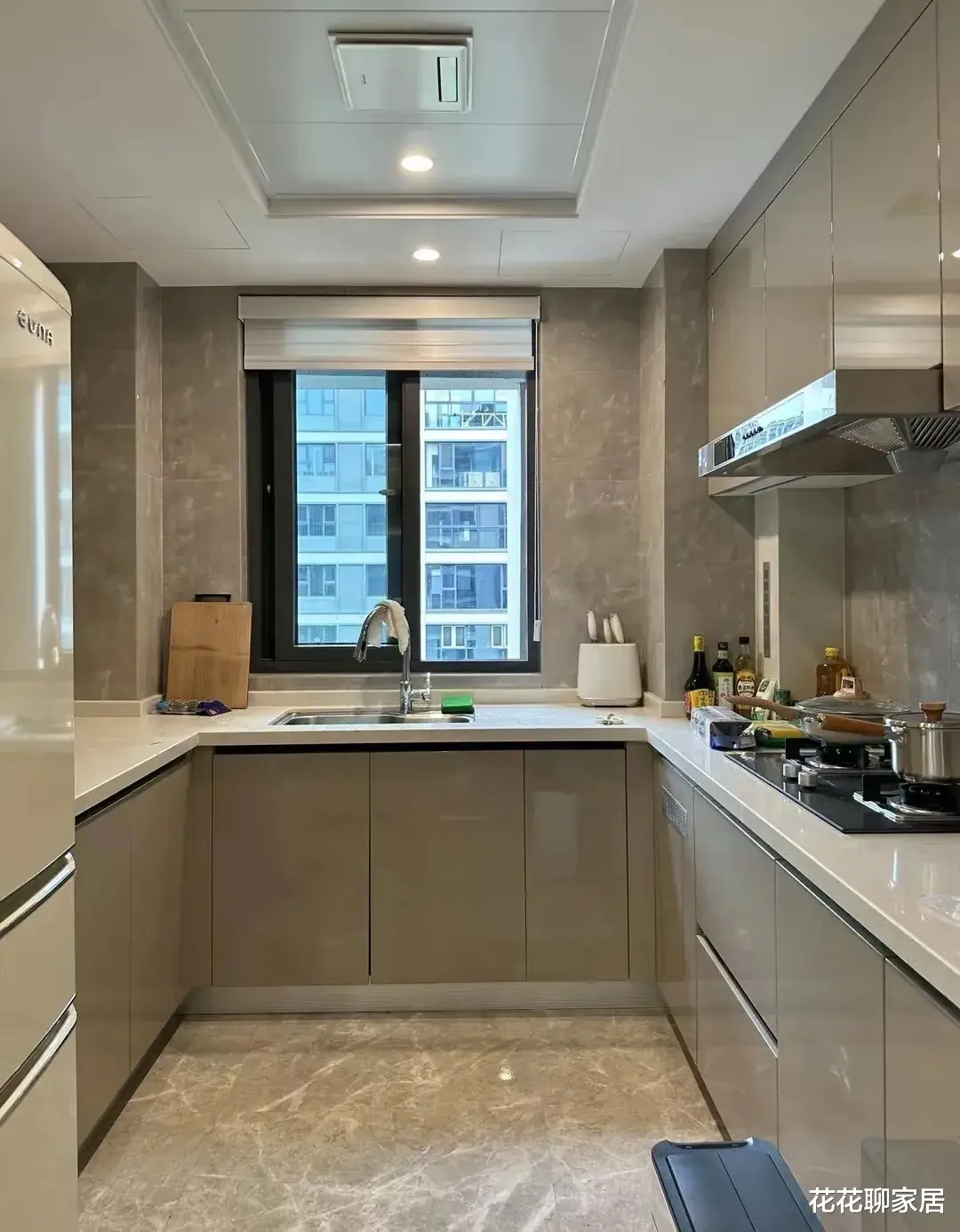 橱柜台面光滑如镜,与柜体高光面相映成趣,宛如一对默契十足的舞伴,在光影交错中演绎着厨房的优雅与和谐。