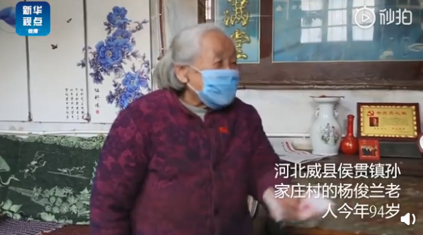 94岁的杨俊兰近日向镇党委交了一笔5000元的“特殊党费”,让镇党委为村民购买一些口罩、消毒液之类的防护品。老人说,现在国家有困难,她干不了其他事情,捐点钱是尽老党员的义务和一点心意。