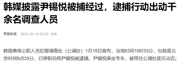 一千多人出动,期间还爆发了肢体冲突,四面楚歌之下,尹锡悦终于放弃幻想,最后主动走出官邸,前往公调处接受调查。