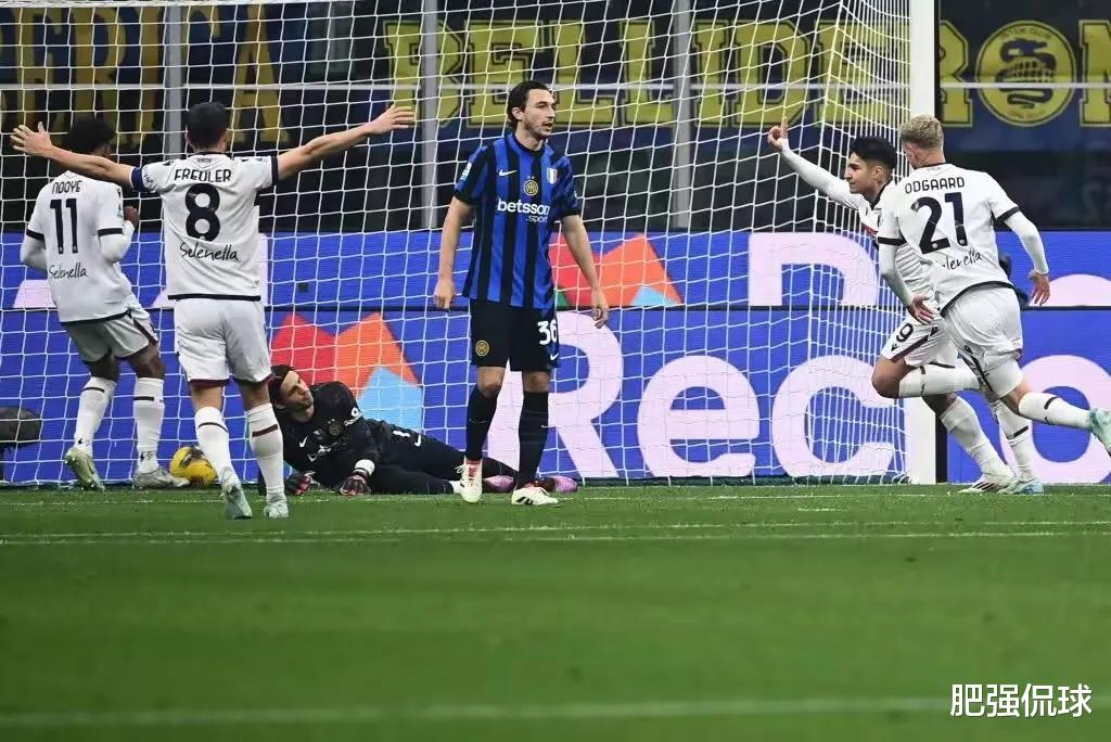 连续进攻无果后,国米球员的体能也开始出现问题,博洛尼亚利用这个契机扳平比分。如果回看失球过程,就能发现这粒进球是两个防守错误共同导致的,首先是迪马尔科争顶对手的传中球时出现冒顶,被后点对手轻松得到;其次是后腰防守区域依然一片真空,让对手在禁区内轻松起脚打门。当然,皮球碰到国米队员腿上发生折射,导致索默反应不及,就属于运气因素了。