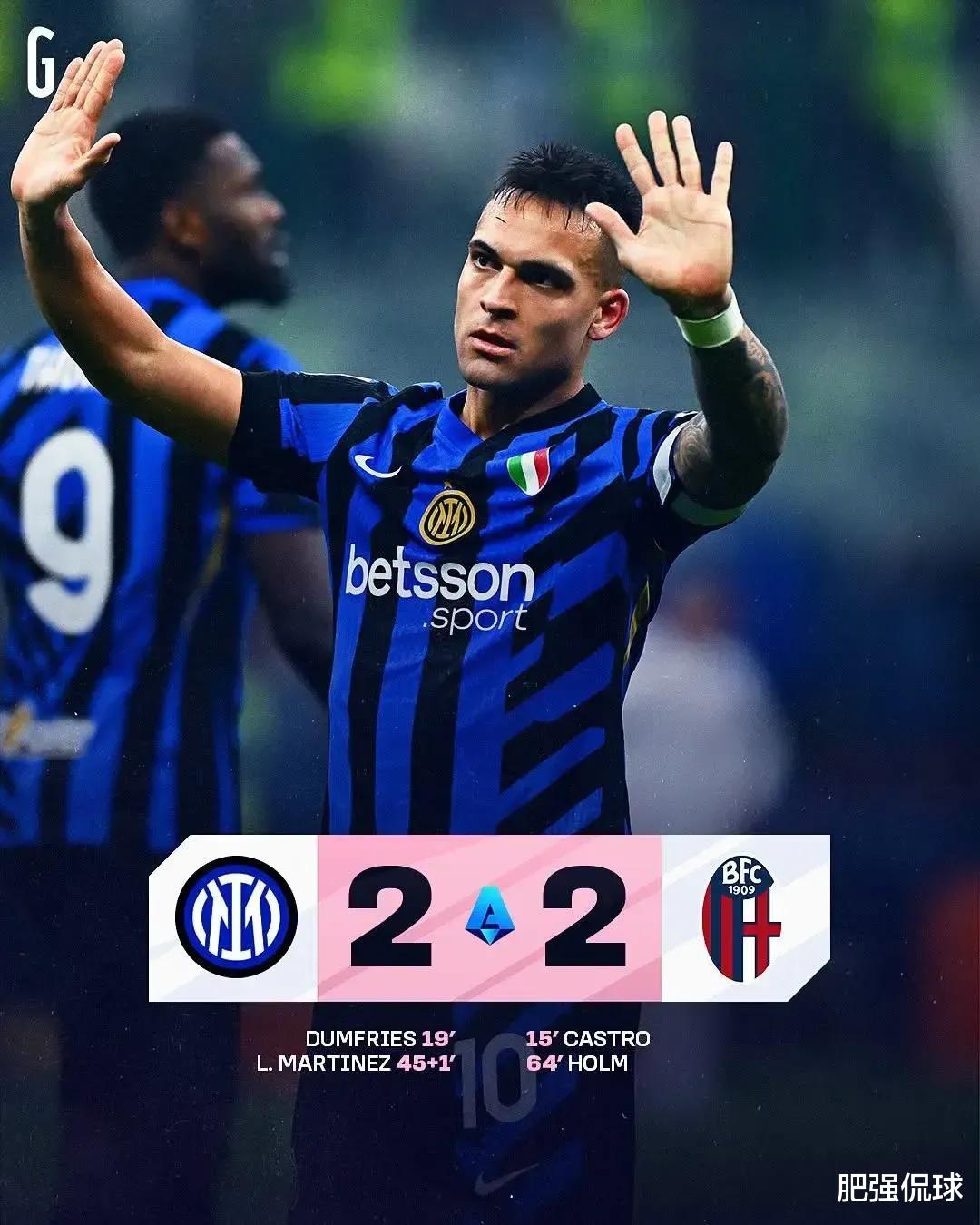 今天凌晨,国米踢完了因为超级杯延期的第19轮联赛,最终国米先丢一球的情况下,上半场就依靠邓弗里斯和劳塔罗的进球实现反超,但下半场没有守住,被对手再进一球,最终2:2与博洛尼亚打平。