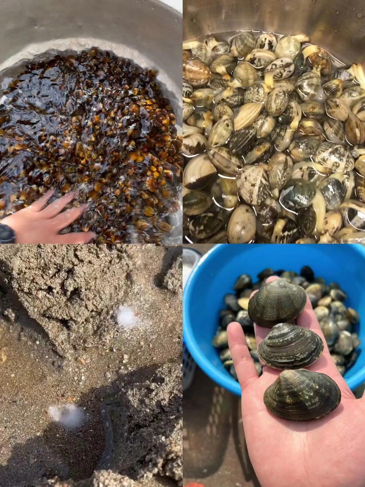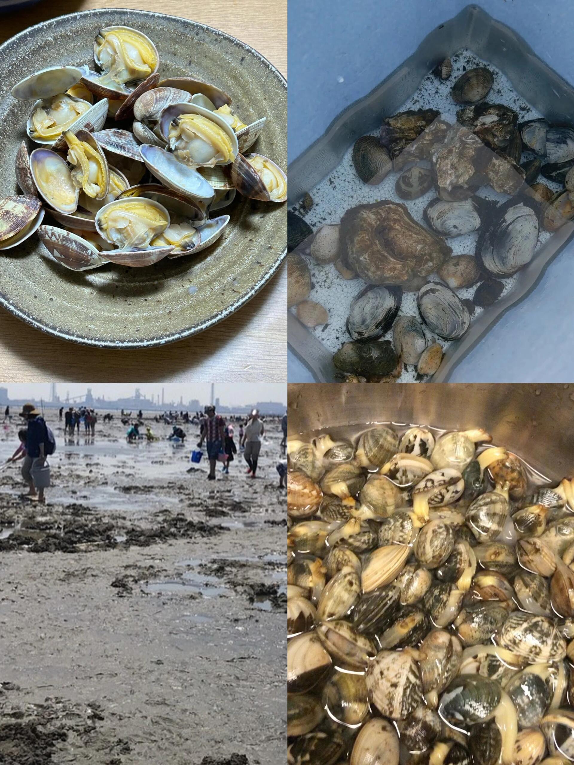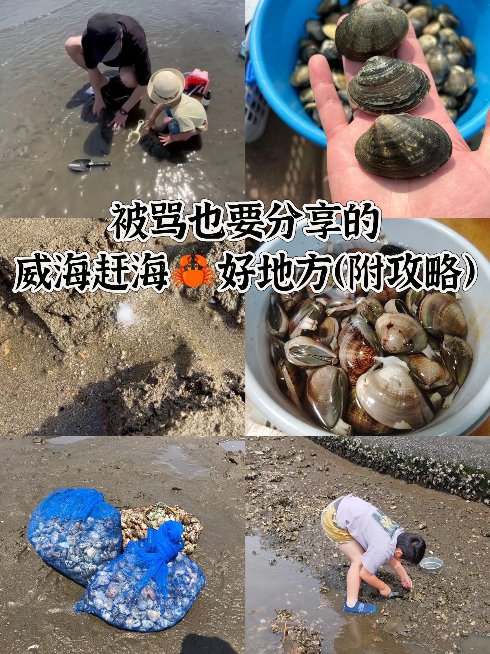 人比较多的赶海地,分收费区(20/人)和免费区,景区的海蛎子、蛏子、小螃蟹挺多的,不过蛏子有点难找,而且收费区全是礁石→很难走❌更建议去免费区(沙滩上的花蛤、月亮贝很多)