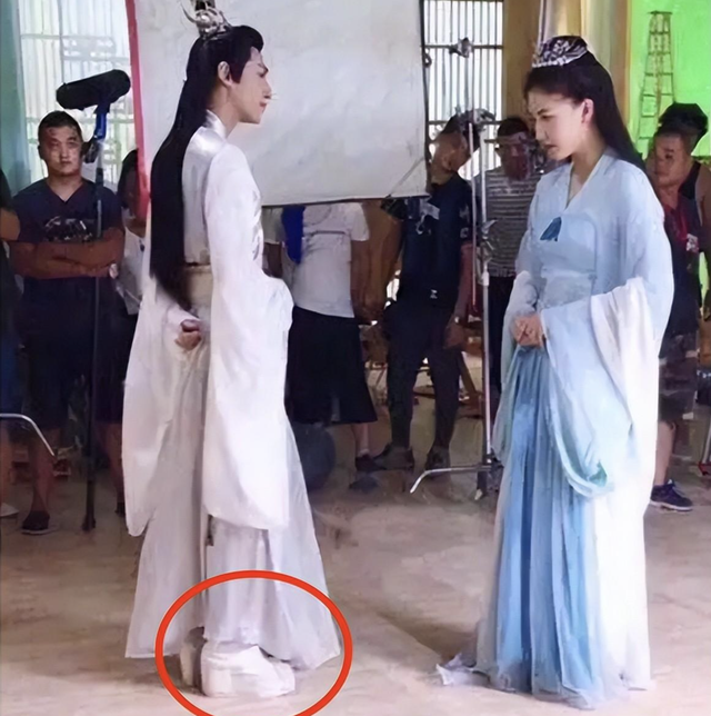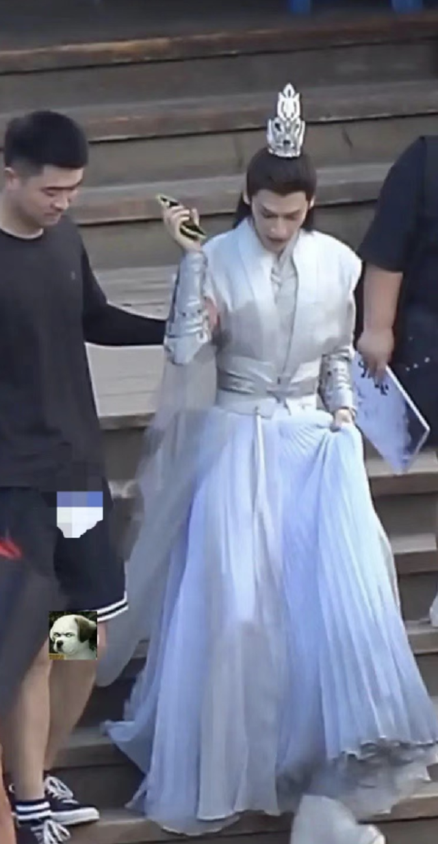 有网友晒出了罗云熙拍《皓衣行》时的剧照,因为穿着10厘米的松糕鞋,所以下楼时显得格外不便。