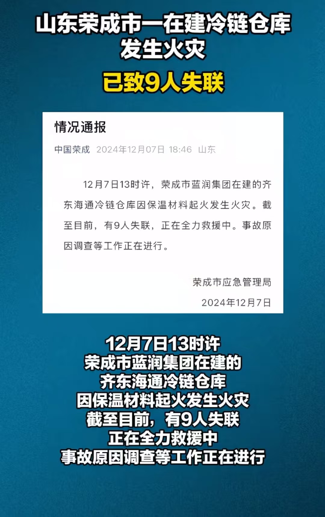 近日,山东荣成市发生了一起令人揪心的在建冷链仓库火灾事故,截至目前已有9人失联,救援工作仍在紧张进行中。这起事故不仅给受害者及其家属带来了巨大的伤痛,也引发了公众对于事故责任归属的广泛关注和争议。