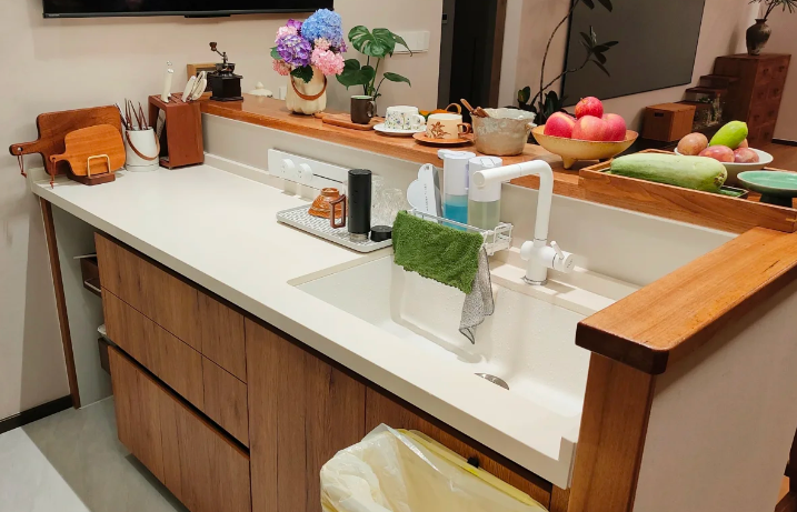 举个例子,当我们清洁厨具的时候,清洁完的餐具就放在高台面上,能快速的沥干清洁。