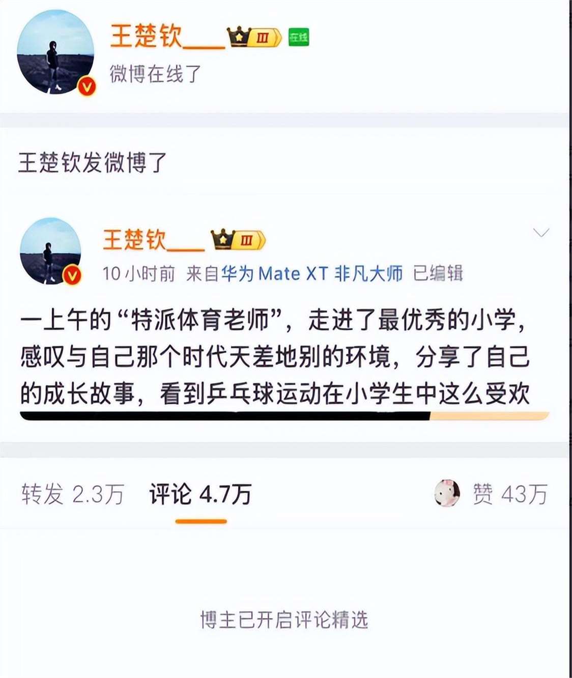 这些粉丝的想象力之丰富,脑洞之大,简直都可以去创作一部情节跌宕起伏的网络剧了。问题的关键在于,粉丝这种失控的言行,偶像真的应该为此负责吗?从某种角度来看,王楚钦其实挺无辜的。毕竟,粉丝团的言论他不可能做到 24 小时全天候无死角监控。