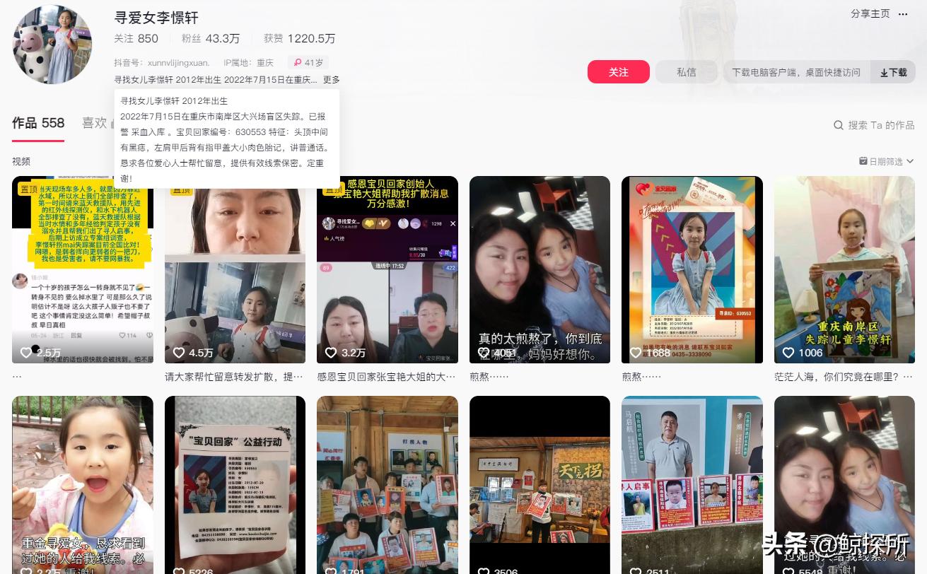 母亲杨阳的寻女革命:✅ 关闭年入20万轮胎店,全职追踪287条线索✅ 悬赏金从10万飙升至100万✅ 抖音发布女儿换牙期齿模数据,引发牙科从业者集体排查