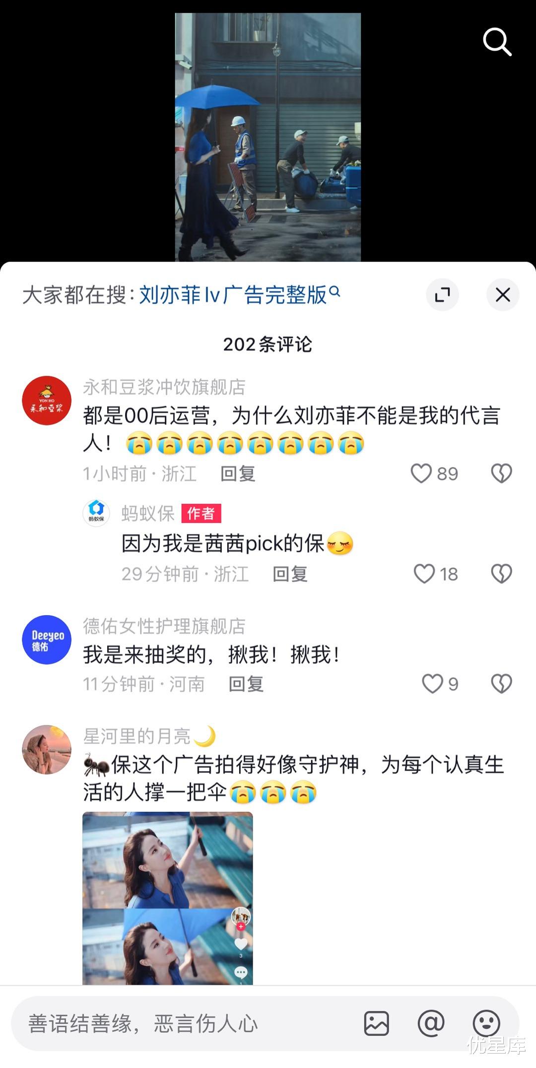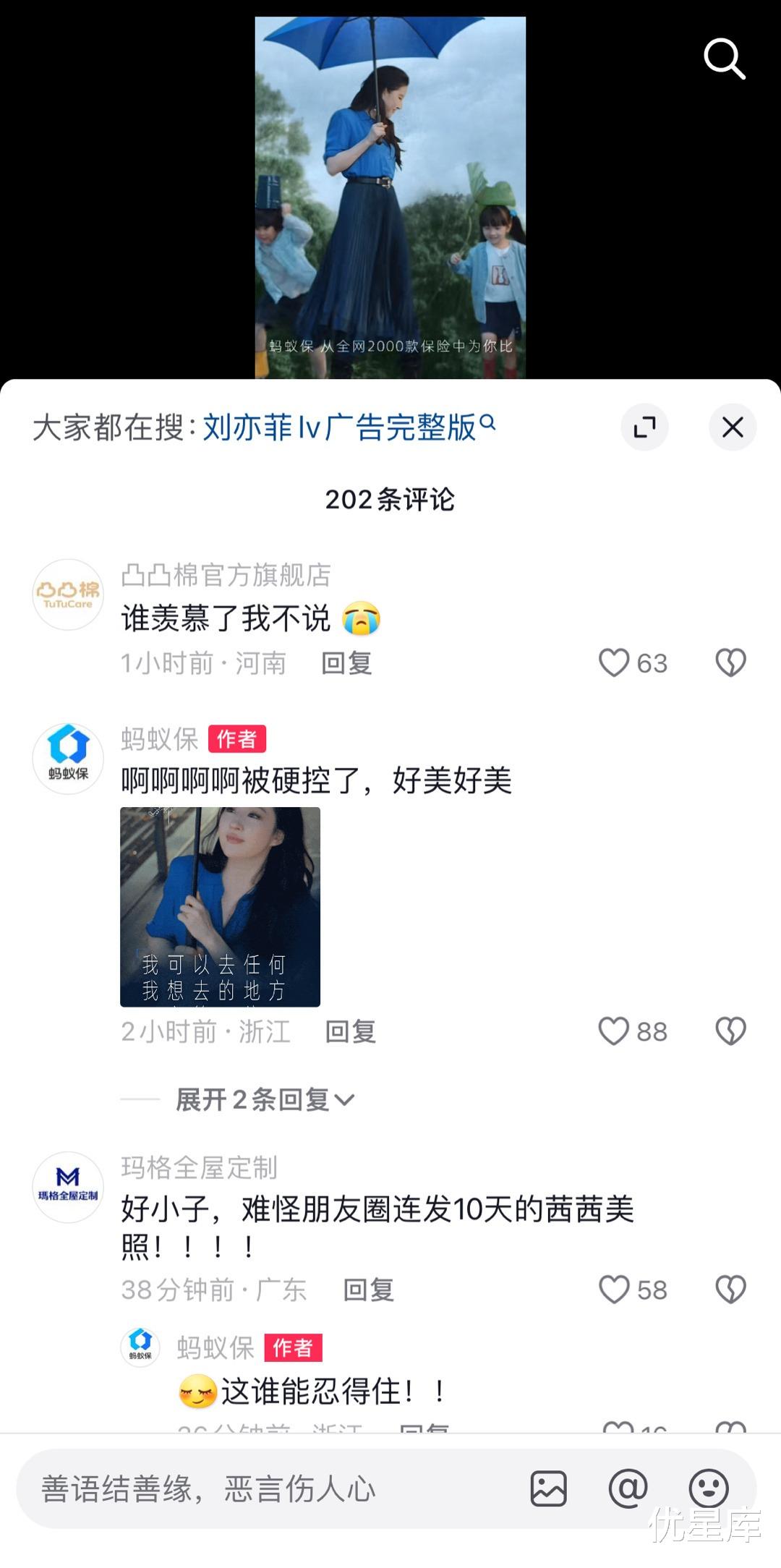 蚂蚁保官宣刘亦菲担任全球品牌代言人,抖音评论区引来各大品牌整活评论,羡慕都快溢出屏幕了。粉丝在偶像代言品牌下面团建见多了,这各大品牌也排队团建,还真是头回见。