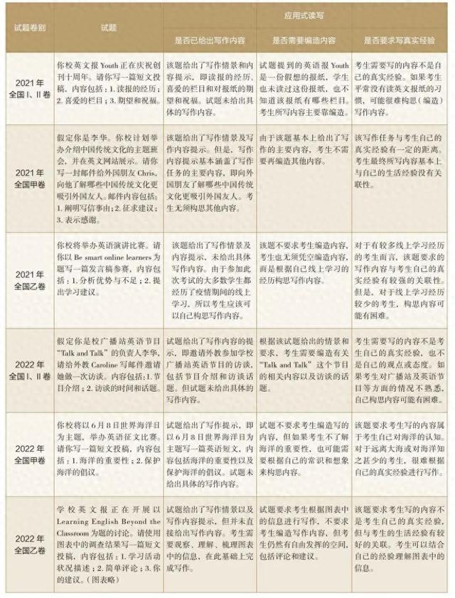 此外,2023年高考英语全国卷试题与往年最大的变化,是书面表达部分的应用文写作试题(即通常所说的作文题)2021年至2023年英语高考全国卷应用文写作试题分析如下图
